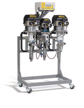 - Instalación de mezclado electrónica de alta presión de 1 pintura 2K para aplicaciones AirCoat o Airless de hasta 270 bar.